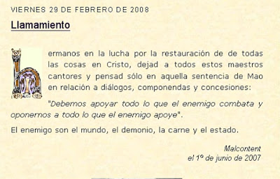 Sólo una aclaración: El tal "Malcontent" es una persona real de carne y hueso que interviene un poco esporádicamente en el español Foro Santo Tomás Moro.